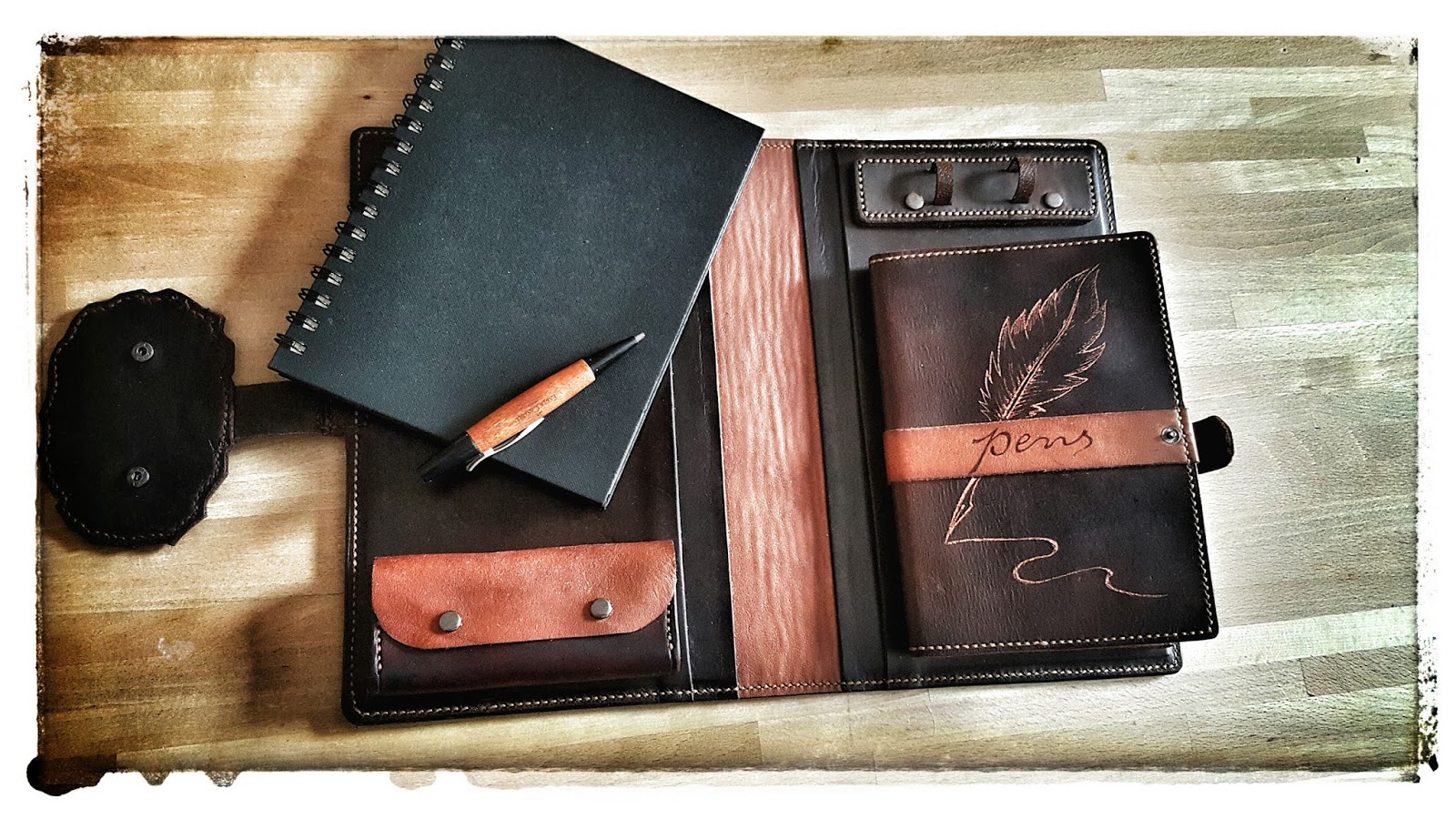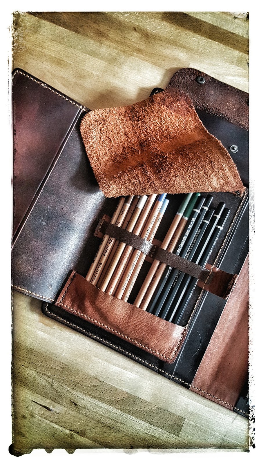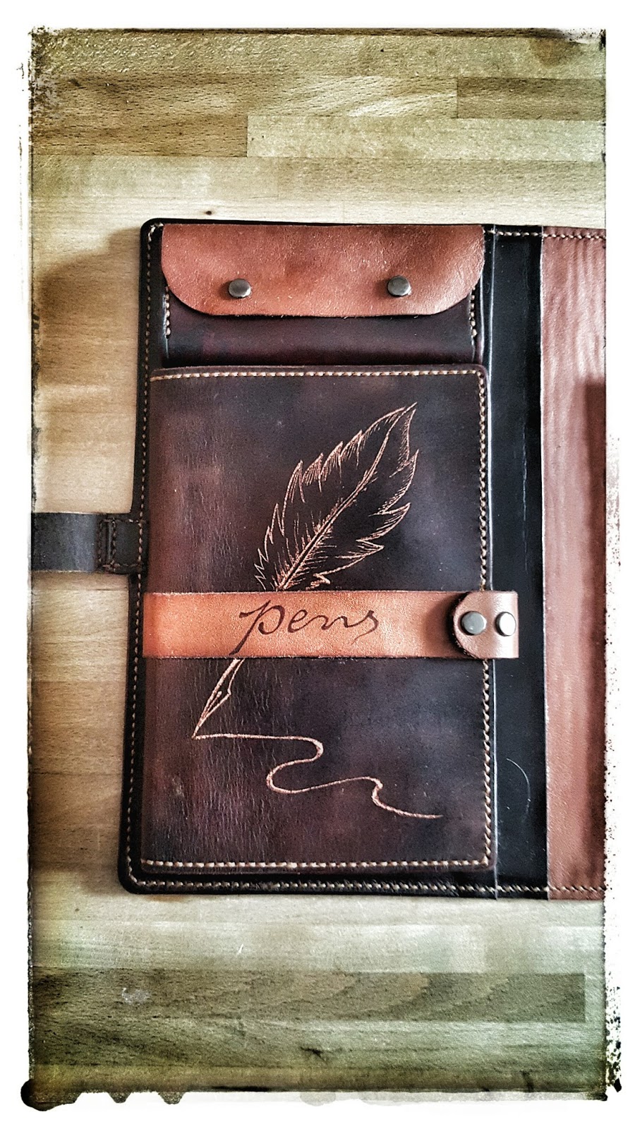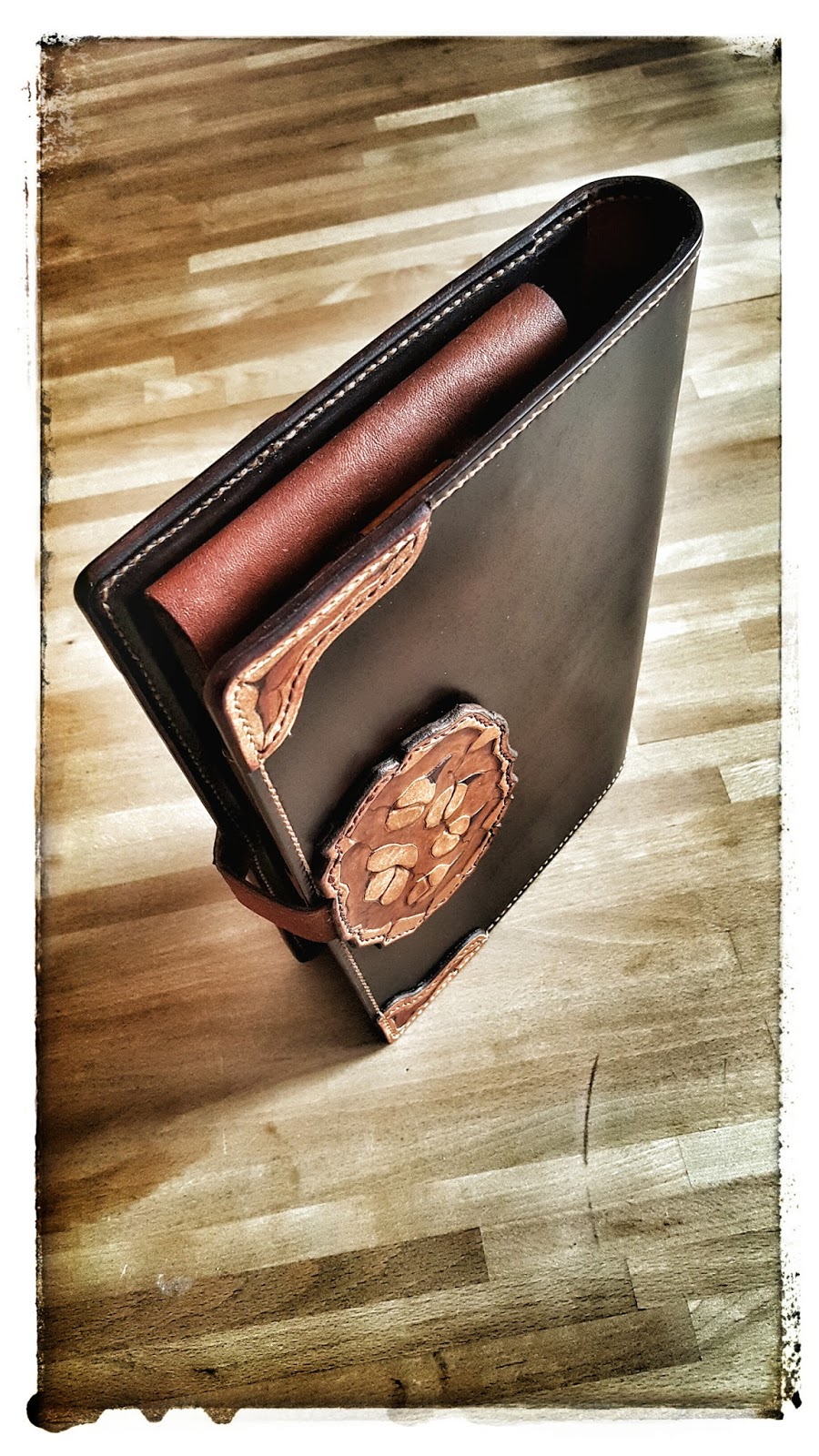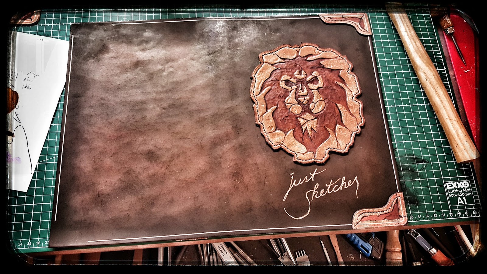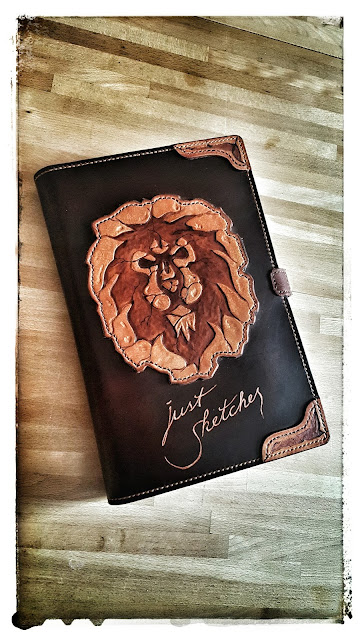 Die ganze Skizzenmappe ist nun aus mehreren Stücken Leder gefertigt.