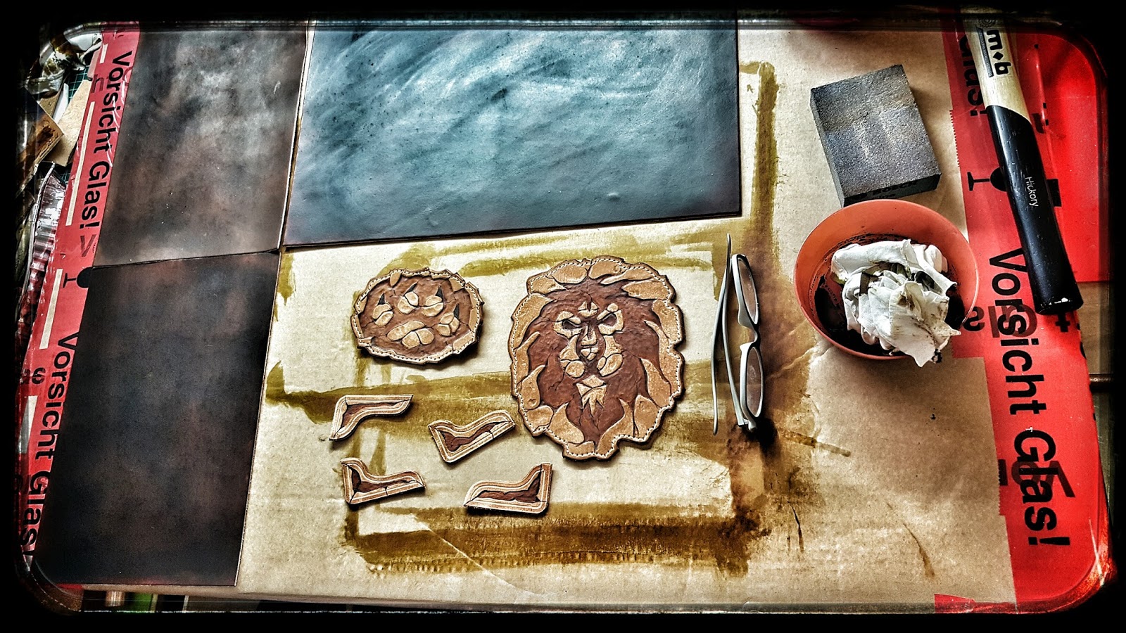den Löwenkopf aufgeleimt habe.