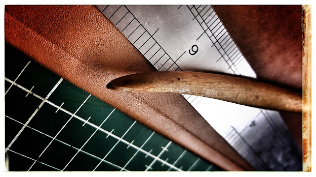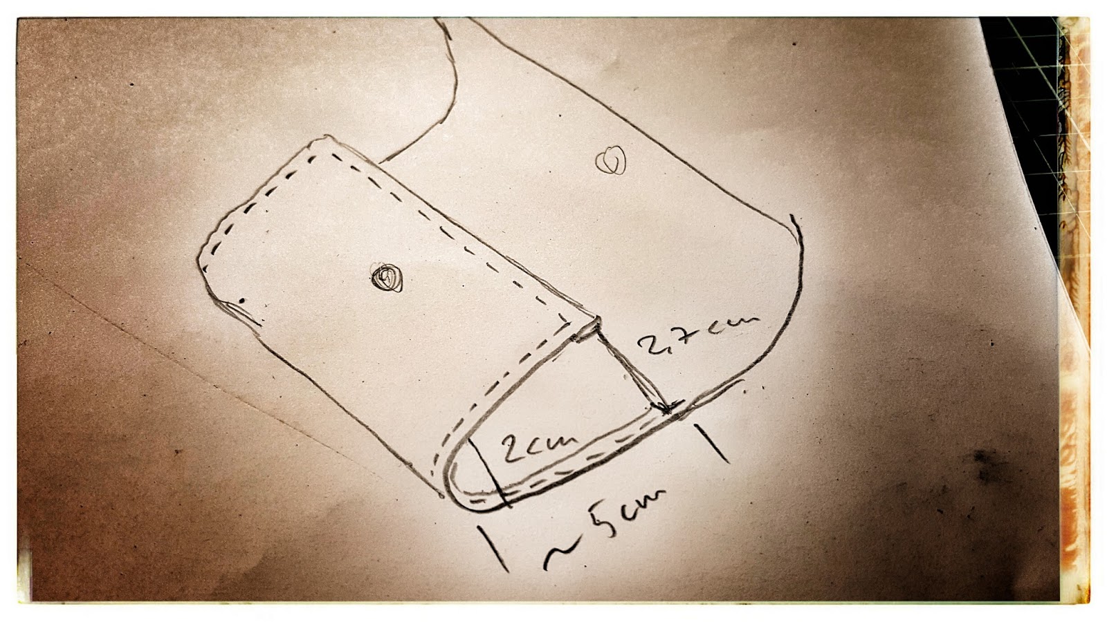 Da ich an der Innenseite des Etuis das Leder umschlagen will, muss ich es an dieser Stelle