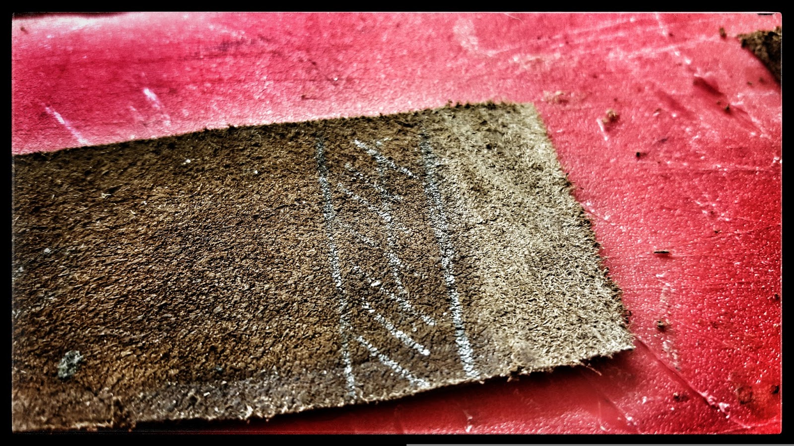 Ich schneide mir also Lederstücke zu, die die erforderliche Länge plus eine Zugabe für die