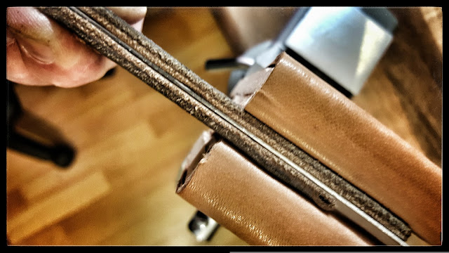 Und direkt an den eingespannten Bandhälften anlegen und aufeinanderleimen.