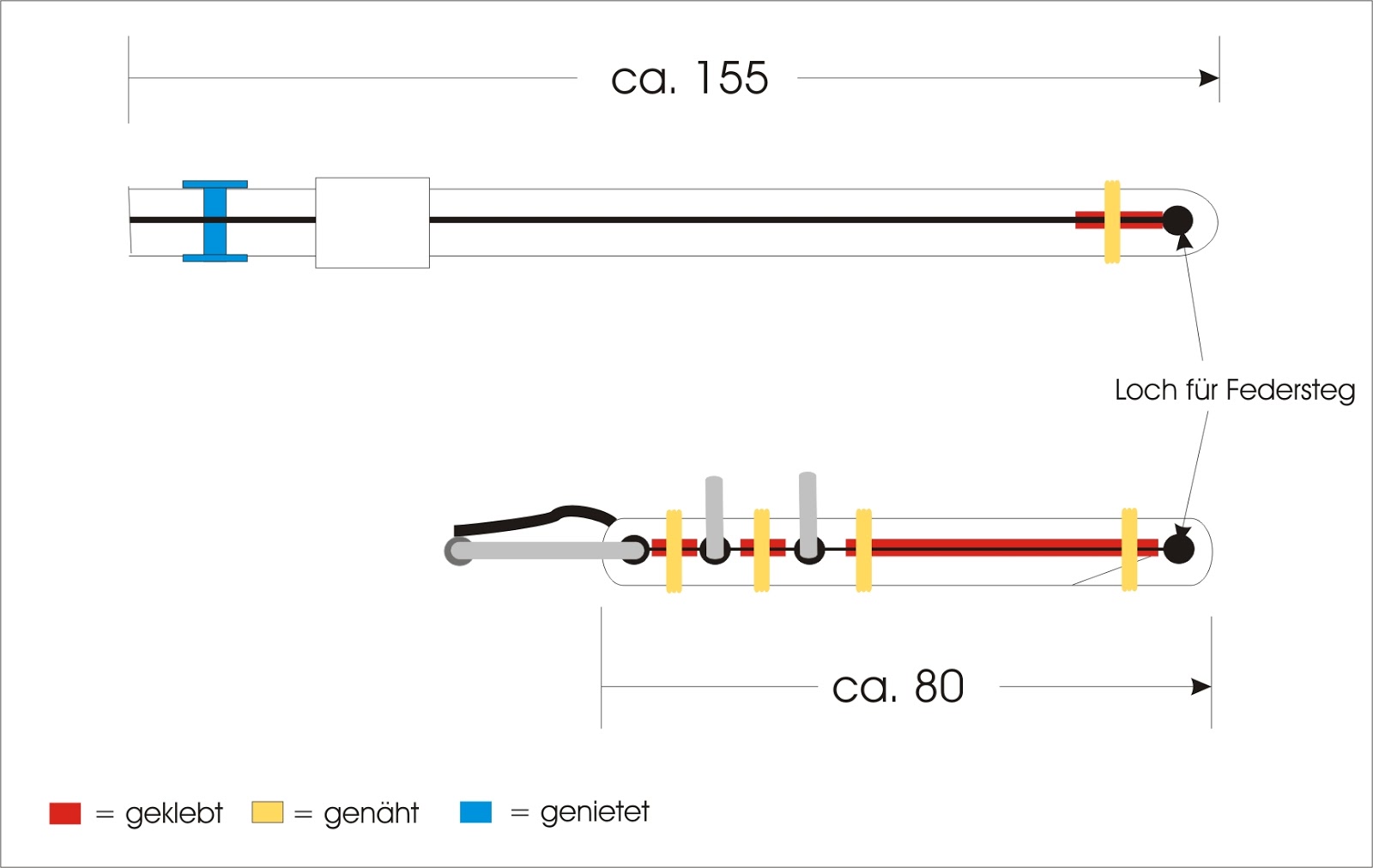Am kurzen Bandende wird das Ende ausgedünnt und ebenfalls