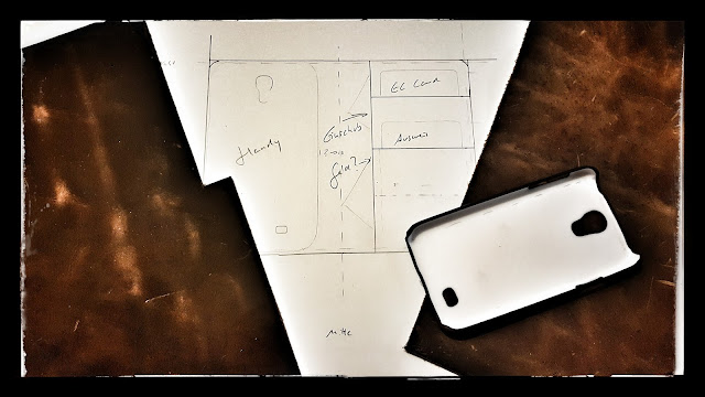 Es soll eine Falttasche werden, die ein Handy Hardcover beinhaltet.