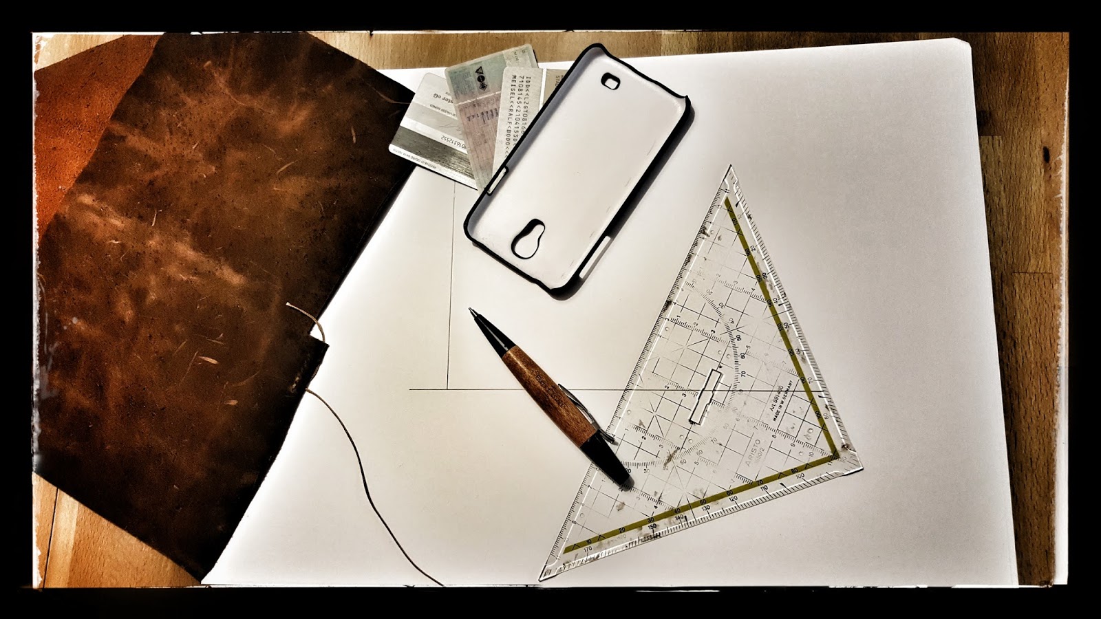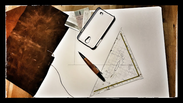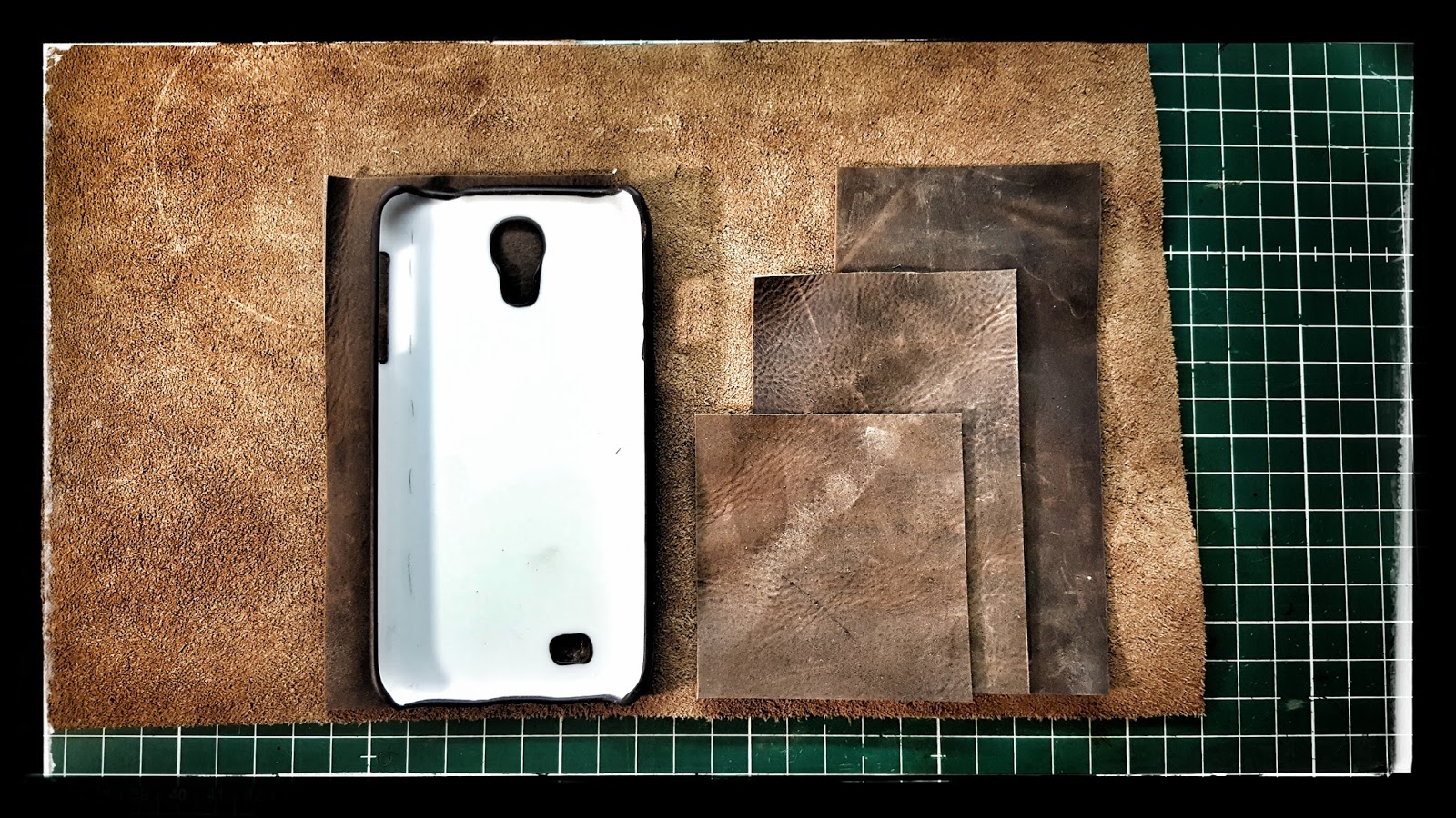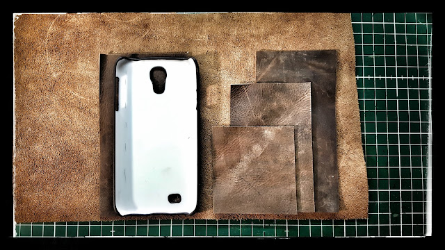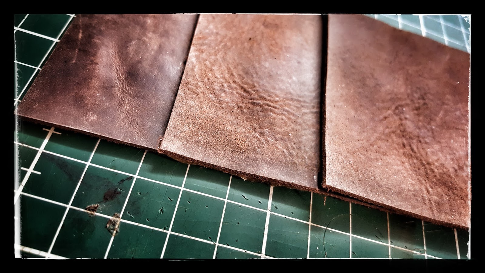 Zuerst schneide ich mir die drei Lagen Leder zu, die später die Karten