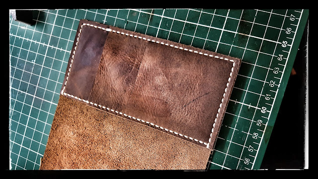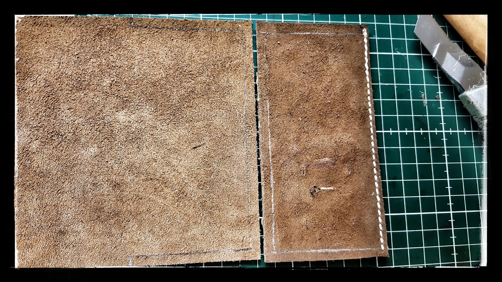 Es sind nun praktisch nur zwei Lagen Leder, die vernäht werden müssen.