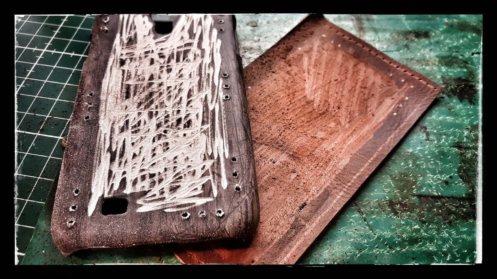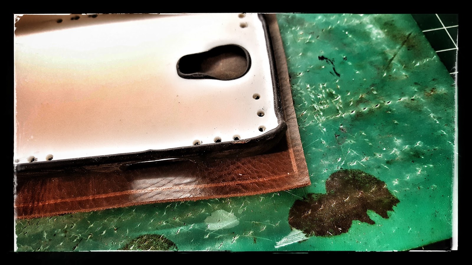 Um es auf den Mantel zu bringen Möchte ich das Cover auf ein weiteres Stück Leder befestigen.