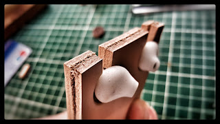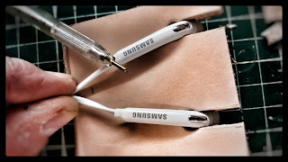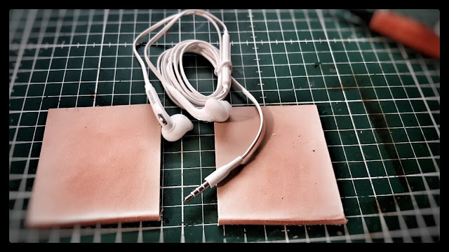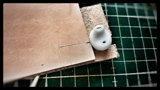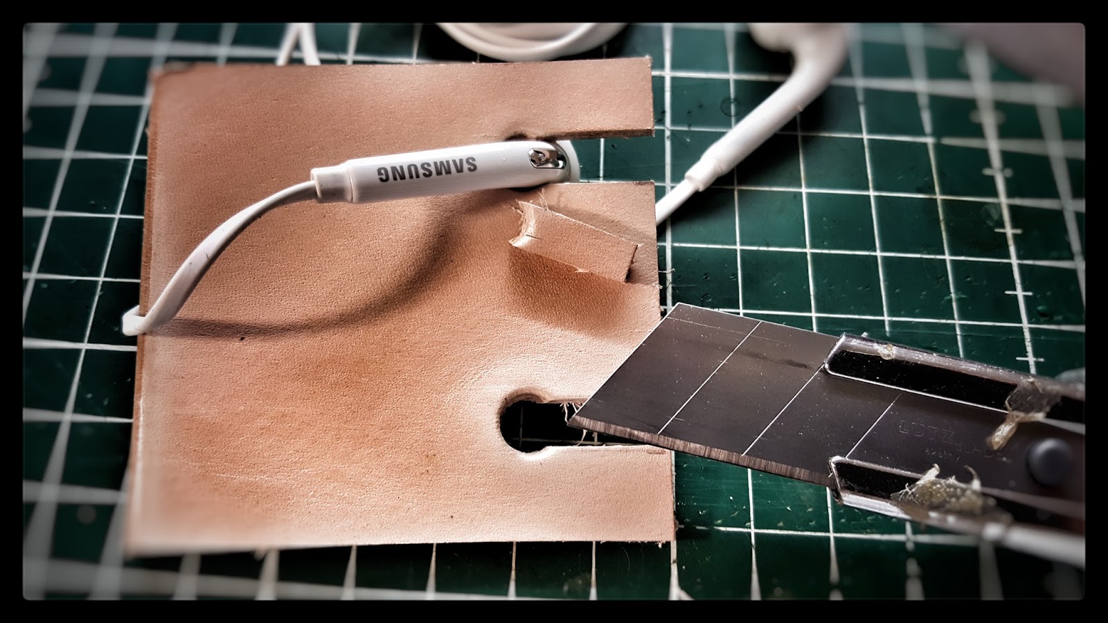 In diesem Leder soll eine Mulde entstehen, die den dicken Teil des InEar Kopfhörers aufnehmen soll.
