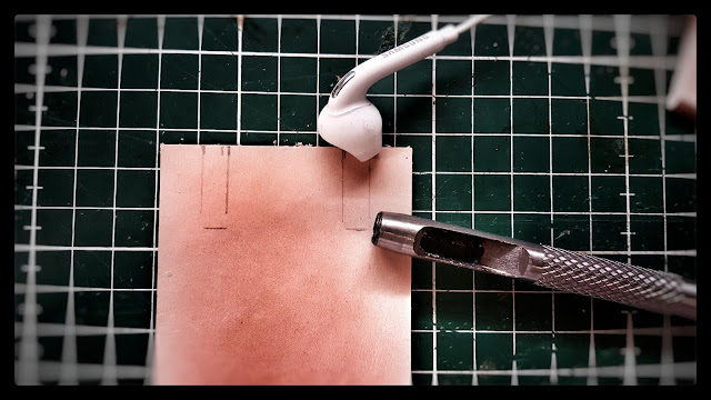 Stanze dann zwei Löcher an das Ende dieser Markierungen.