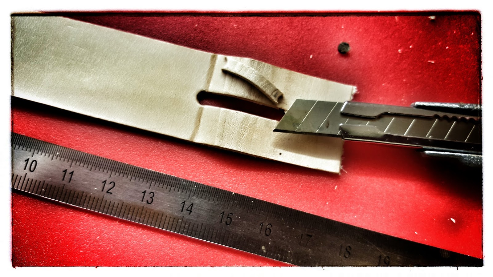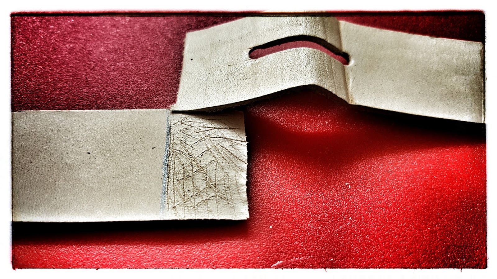 Hier sieht man genau, wie das Leder, durch das anschärfen, fasst wie ein Stück aussehen.