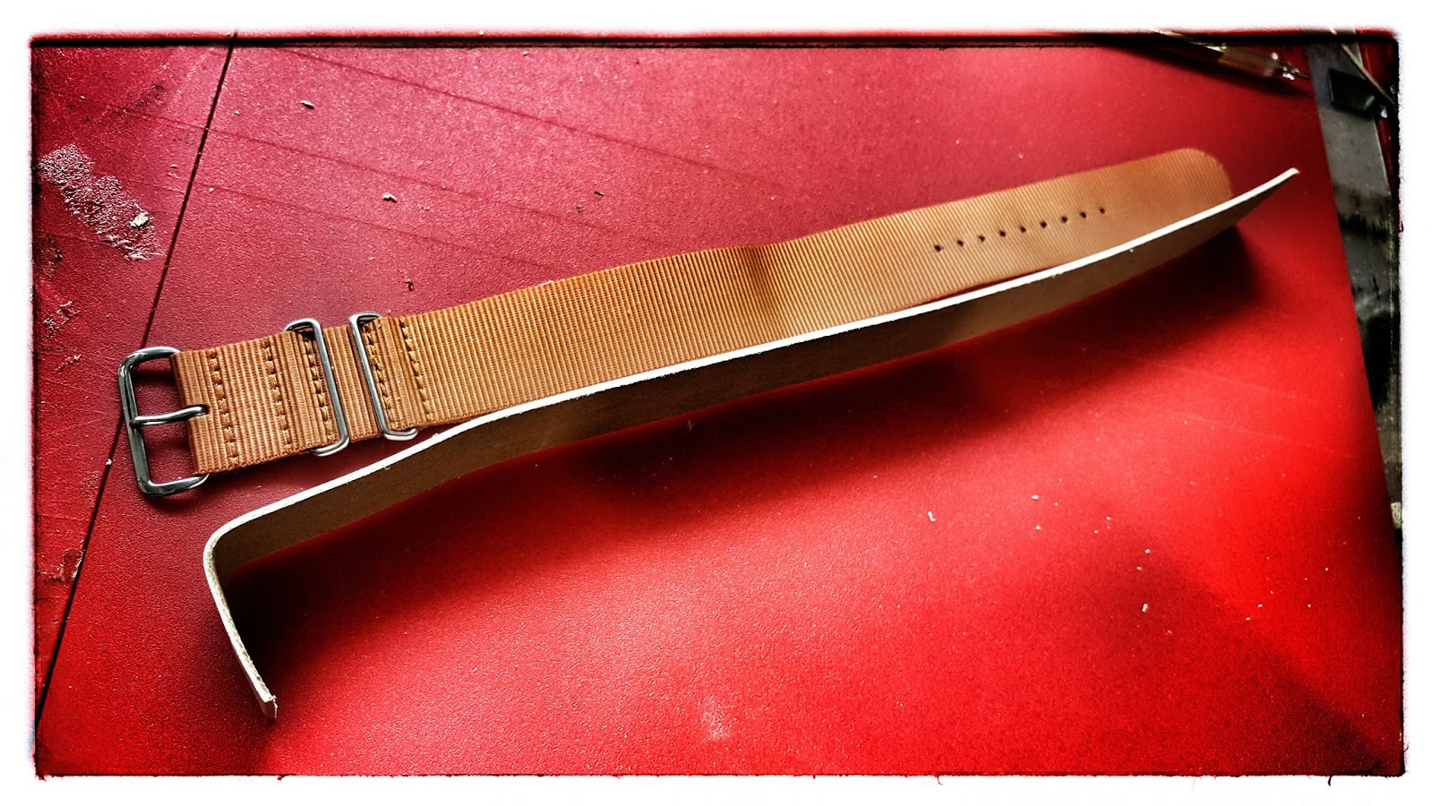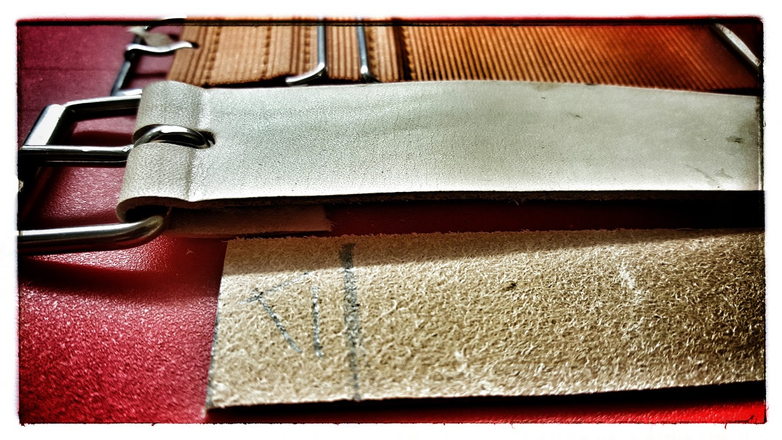 Da ich ja keinen Lederstreifen habe, der lang genug ist, setzte ich die beiden Enden aneinander.