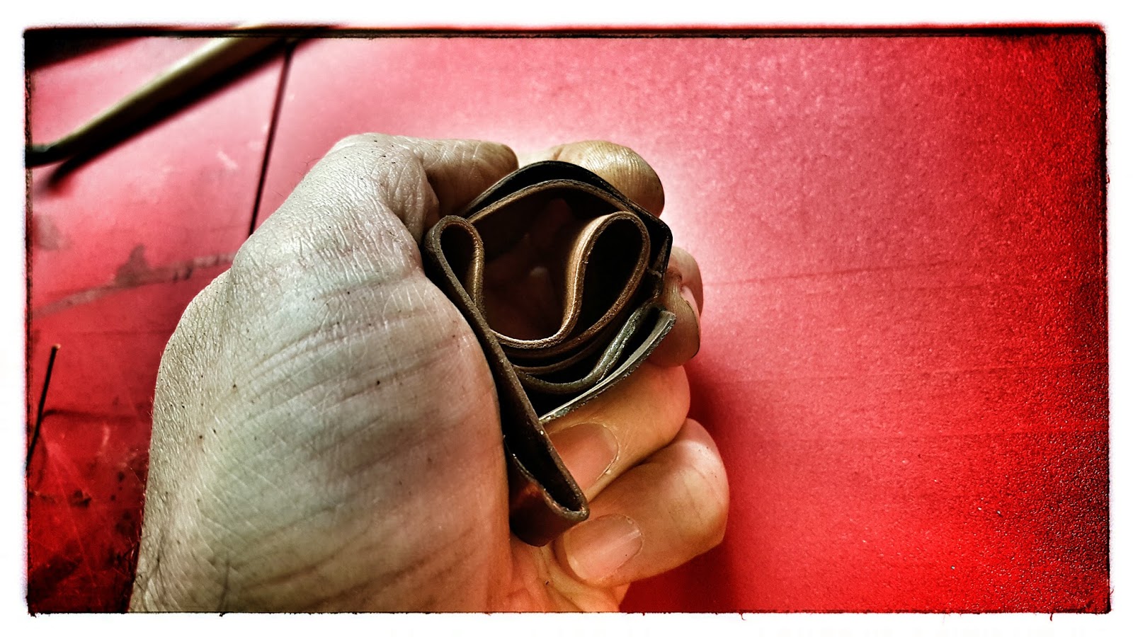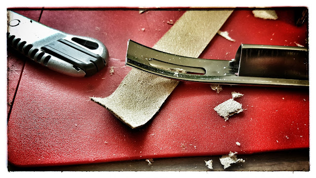Da hierfür 1mm auch noch zu dick ist, dünne ich den Lederstreifen auf ca 0,7mm.