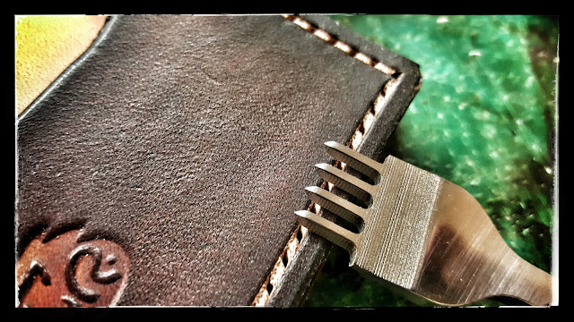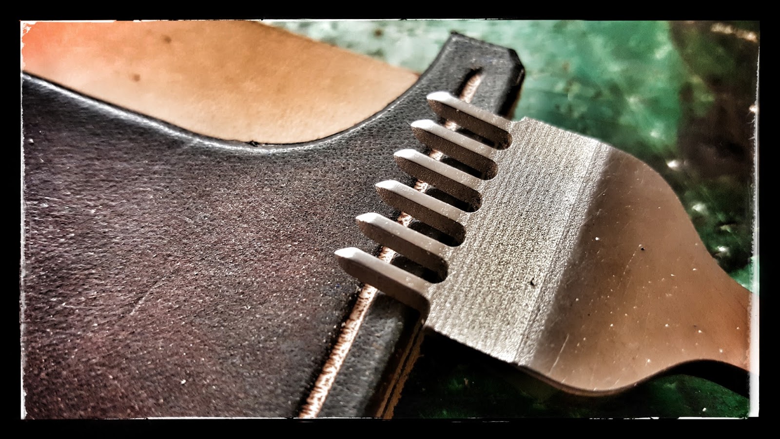 Das Werkzeug durchdringt nicht alle Lederschichten, deshalb schlage ich es so