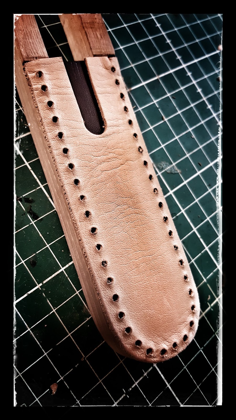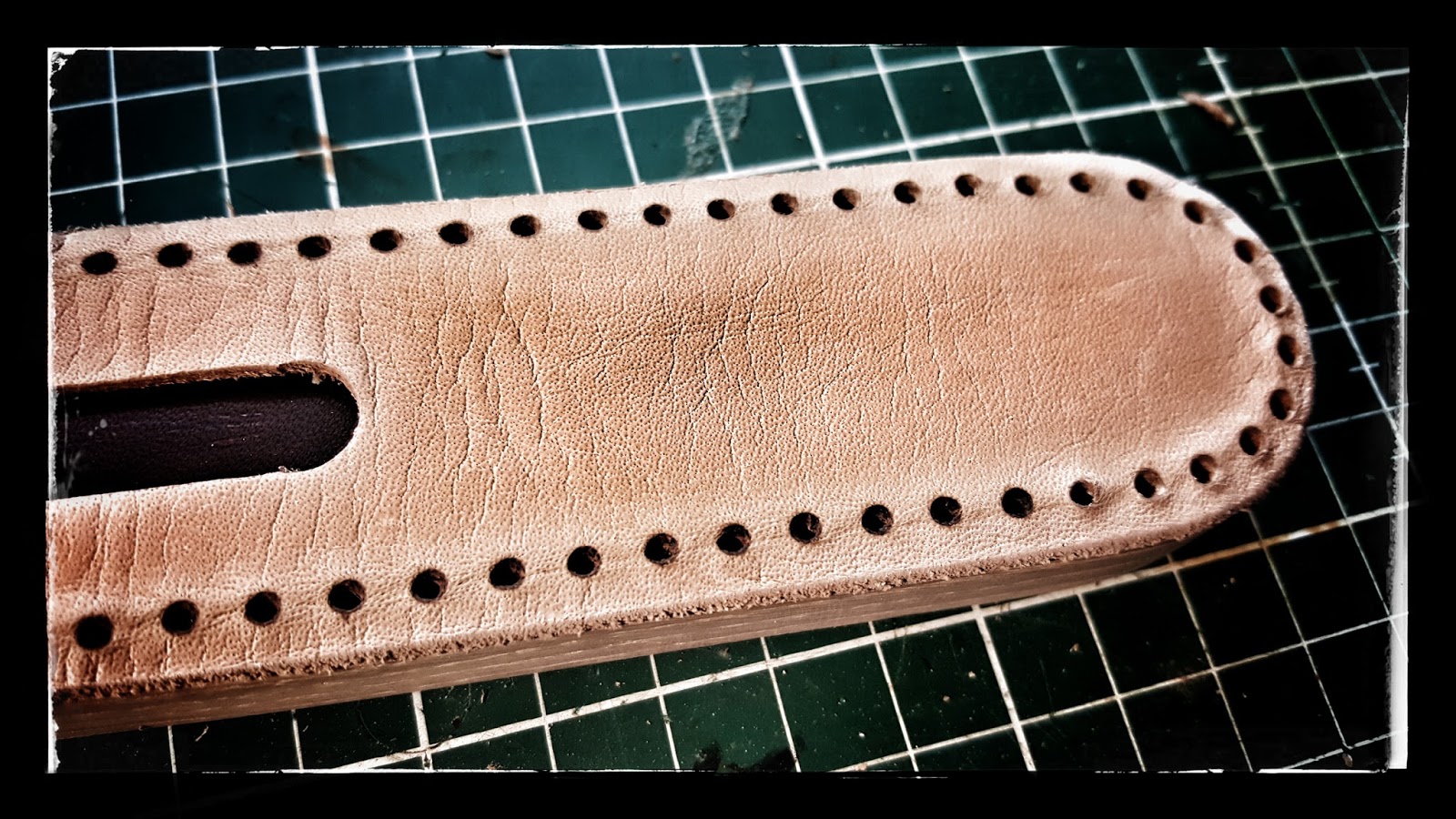 Diesen Schritt habe ich eingefügt, da ich als nächstes mit einem Bohrer durch das Leder und das