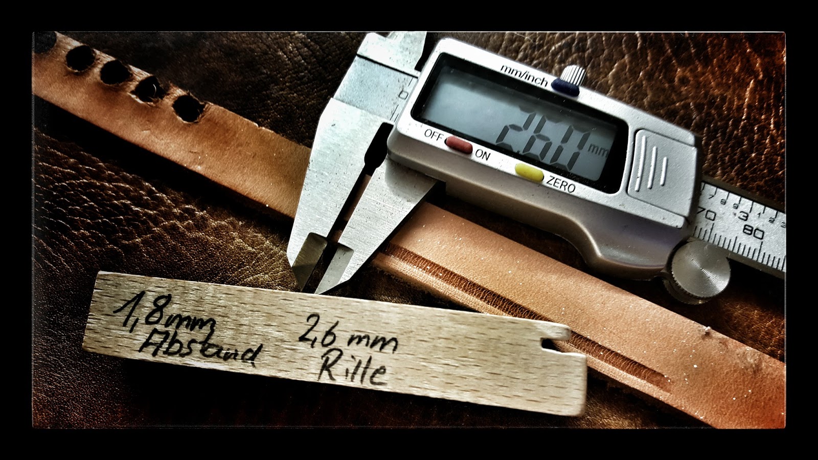 Mit diesem Werkzeug kann man parallel zur Werkstückkante Rillen in das Leder ziehen.