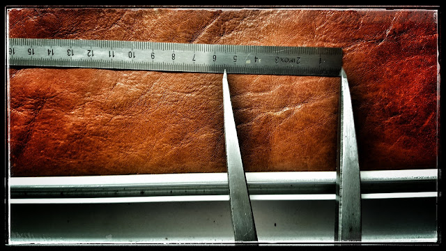 Die ermittelten Maße werden auf ein Stück Leder übertragen.
