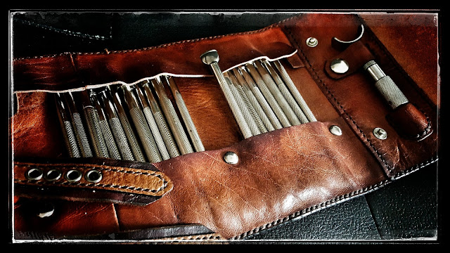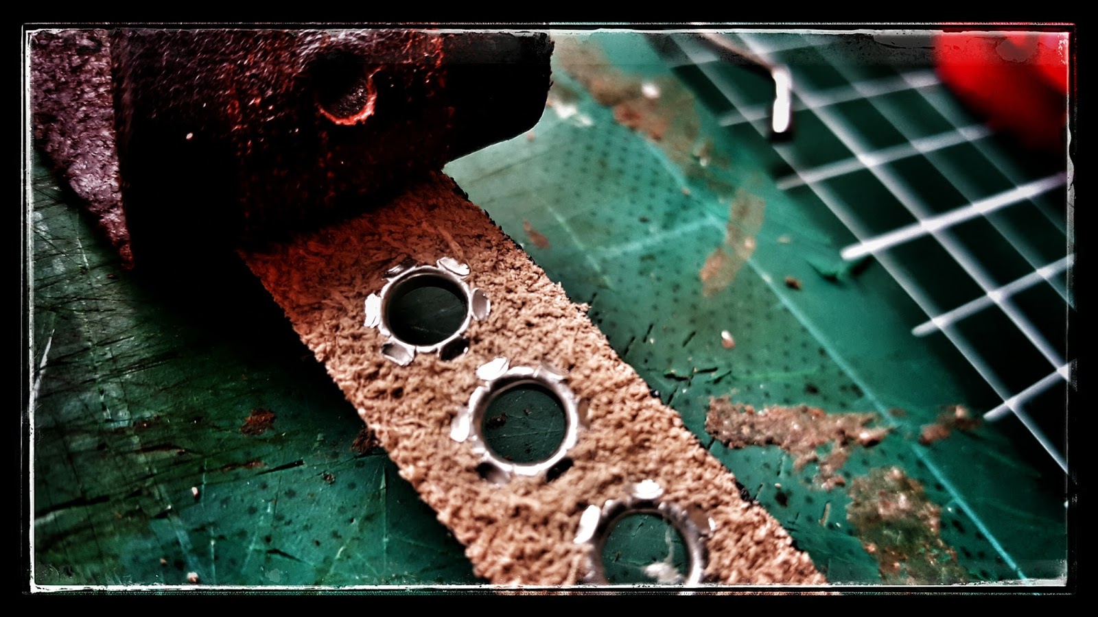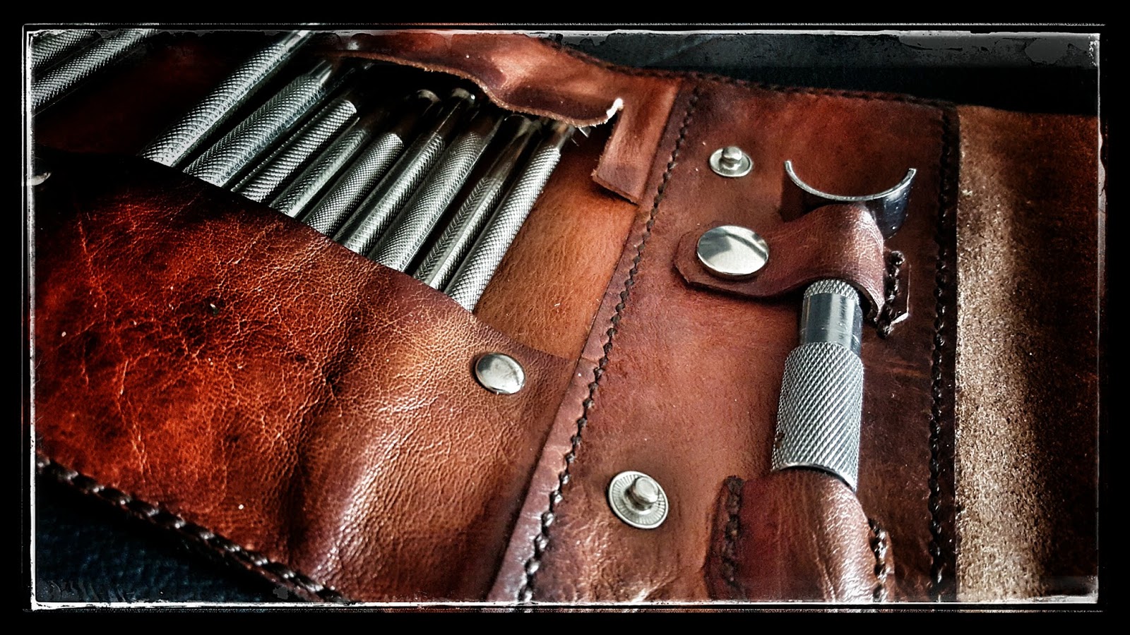 Um diese Kanten vom Leder der Werkzeugrolle fern zu halten, setze ich diese Ösen nur in
