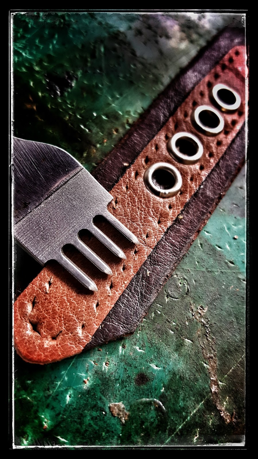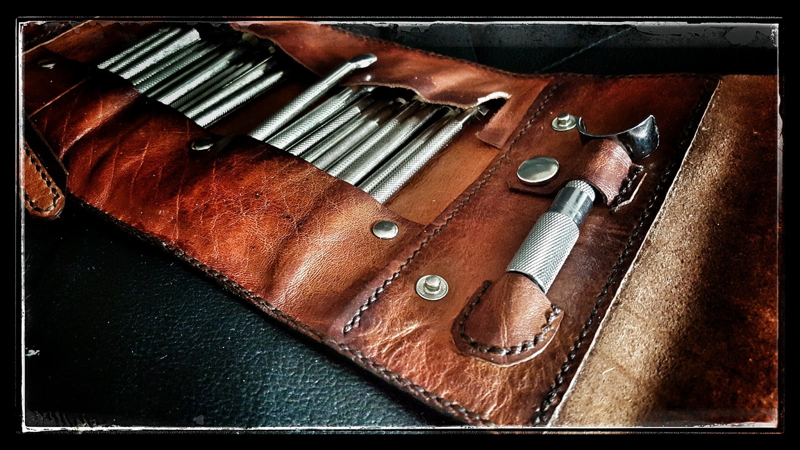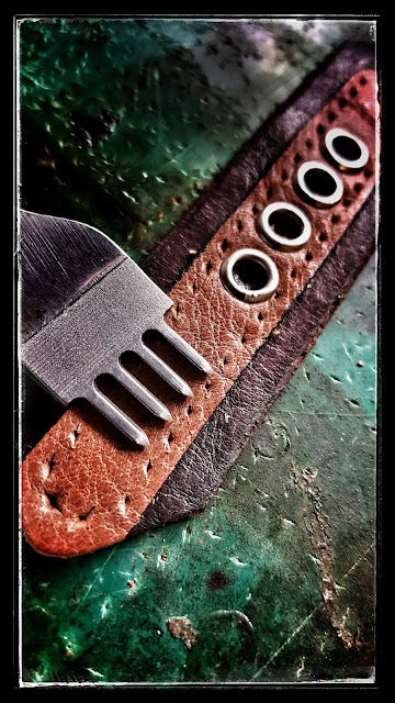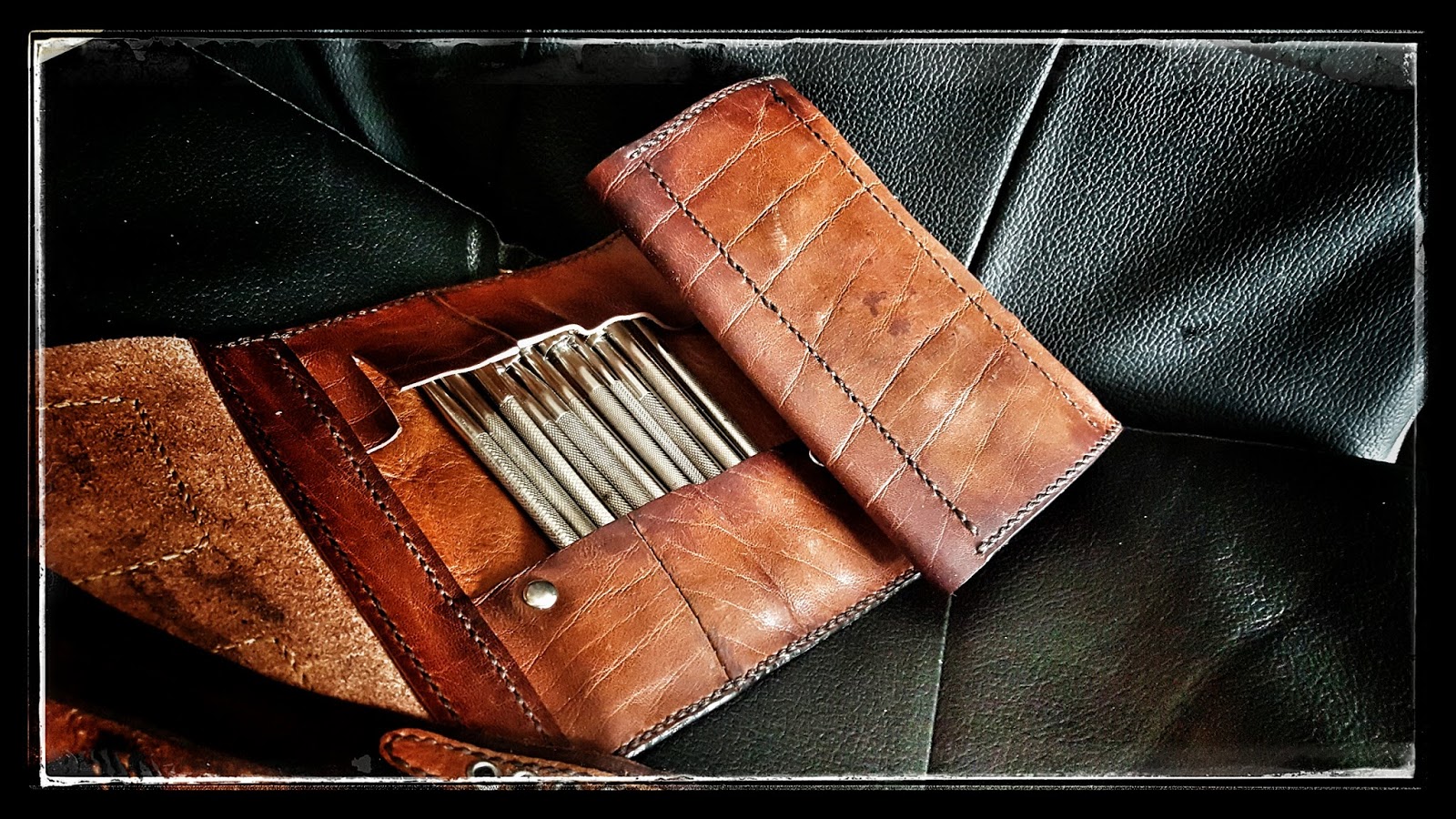 Um diese Kanten vom Leder der Werkzeugrolle fern zu halten, setze ich diese Ösen nur in