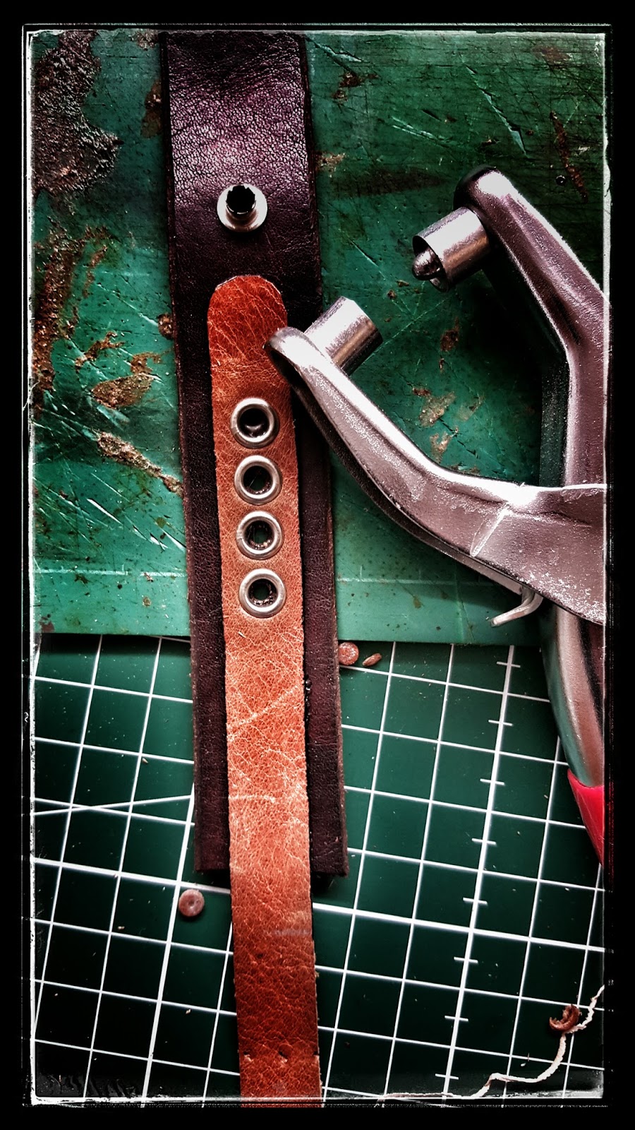Passend zu den Nieten und Druckknöpfen werde ich die Löcher mit „Eyelets“ versehen.