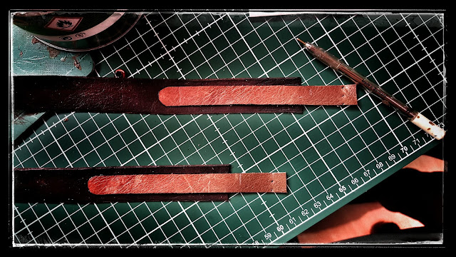 den aufgesetzten Zierlederteil, und Leime das Ganze dann auf den Riemen.